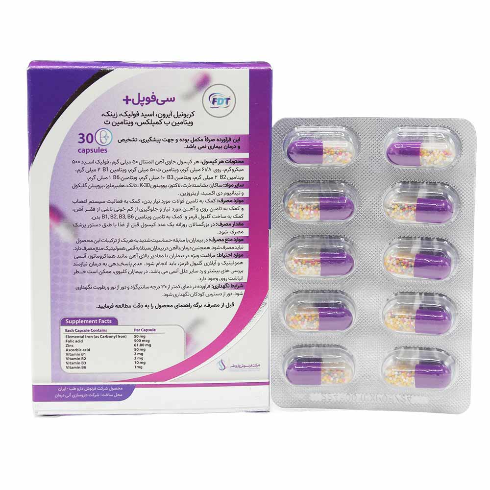 ترکیبات موجود در کپسول سی فوپل پلاس با دقت انتخاب شدهاند تا نیازهای تغذیهای بدن را بهطور کامل برآورده کنند. این قرص آهن که تحت پروانه ساخت شرکت فرنوش دارو طب در ایران تولید میشود، با استفاده از کربونیل آهن، جذب بهینهای را در دستگاه گوارش فراهم میکند. با مصرف این مکمل، میتوانید انرژی ازدسترفته خود را بازیابید و به بهبود کیفیت زندگی خود کمک کنید. هر بسته از این محصول حاوی 30 کپسول است که در جعبه مقوایی عرضه میشود و برای یک دوره مصرف مناسب طراحی شده است.
