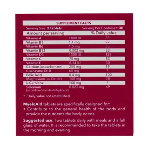 - ال کارنیتین به کار رفته در قرص میلواید با انتقال اسیدهای چرب به میتوکندری، نقش مهمی در تولید انرژی ایفا میکند.
